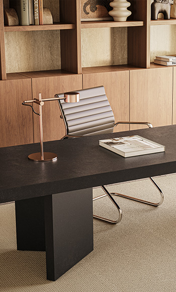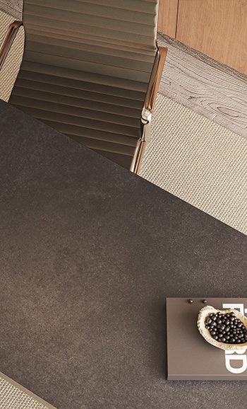 Caesarstone’s bold new metal finish delivers a strikingly realistic oxidised look, both visually and to the touch. Deep blue‑grey and charcoal tones create a rich, weathered‑steel patina. All Porcelain colours are available for viewing in Caesarstone® showrooms.