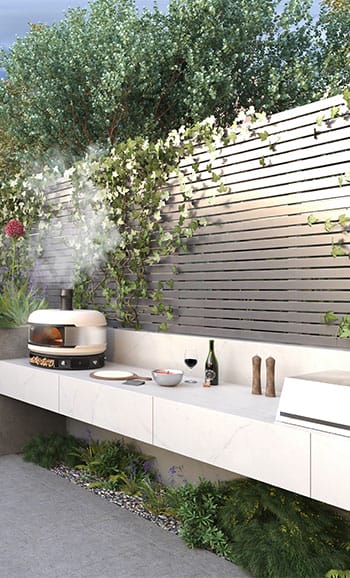 Its pearl-white base is overlayed with a delicate intersection of veining in crackling dark grey. The subtle lustre of the surface and its honed finish contribute to the timeless elegance of the design. All Porcelain colours are available for viewing in Caesarstone® showrooms.
