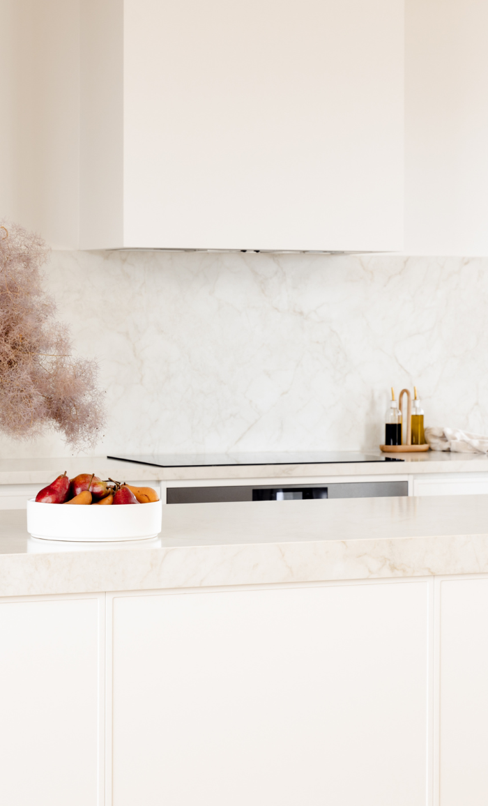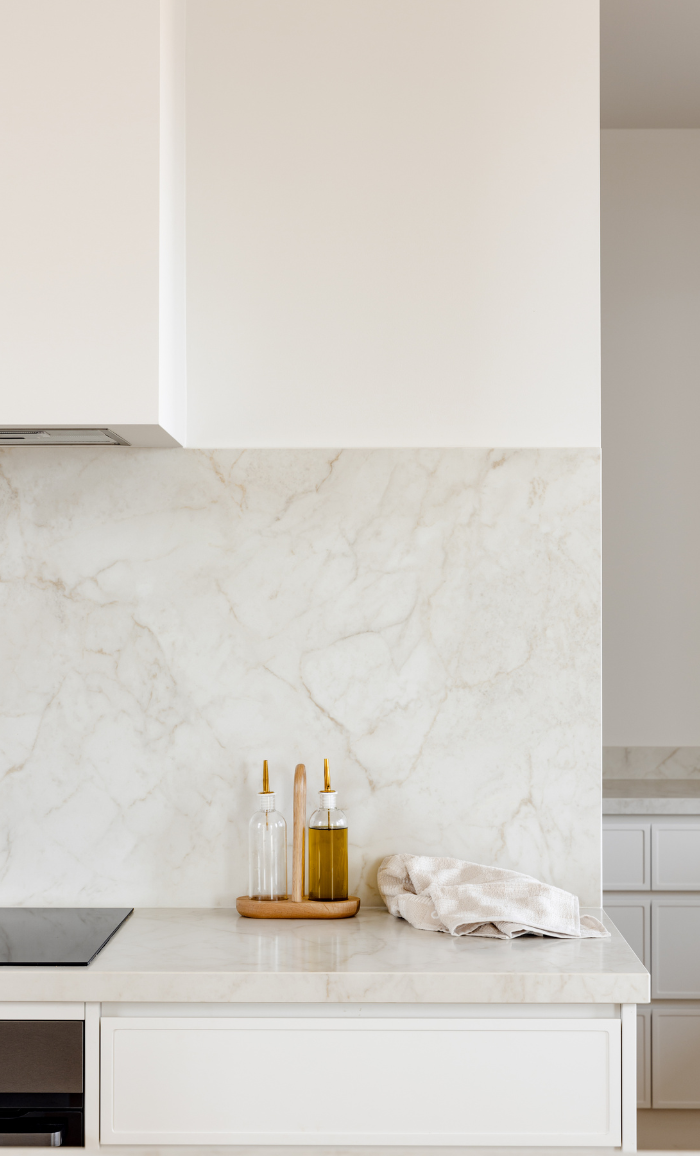The latest iteration of the distinctive Calacatta marble, Marbannova reflects the global shift towards warmer hues for interiors. Featuring a warm white base with prominent veining, Marbannova is infused with striations of subtle gold, warm grey and muted copper. Silk finish.