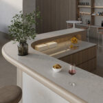Lightcrest™ is a study in quiet sophistication, with Its powdery grey base suffused with a non-directional bloom of mottled grey veining in a series of soft tonal greys. It presents a rhythm of harmony that will always invoke a sense of finesse and timeless elegance, while never dominating a space. Suitable for kitchen, bathroom and living spaces, Lightcrest™ is a truly versatile surface, with the ability to partner with a vast array of materials and colour palettes.