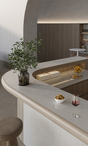 Since our products are manufactured from natural materials, each slab is unique. As a result, our images are representative and may differ from your actual surface. We encourage you to view the design at your nearest Caesarstone® or Kitchen Retail Showroom.