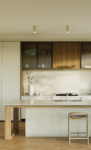 Since our products are manufactured from natural materials, each slab is unique. As a result, our images are representative and may differ from your actual surface. We encourage you to view the design at your nearest Caesarstone® or Kitchen Retail Showroom.