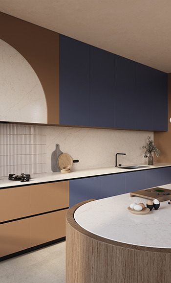 Since our products are manufactured from natural materials, each slab is unique. As a result, our images are representative and may differ from your actual surface. We encourage you to view the design at your nearest Caesarstone® or Kitchen Retail Showroom.