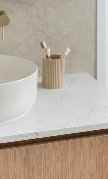 Since our products are manufactured from natural materials, each slab is unique. As a result, our images are representative and may differ from your actual surface. We encourage you to view the design at your nearest Caesarstone® or Kitchen Retail Showroom.