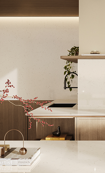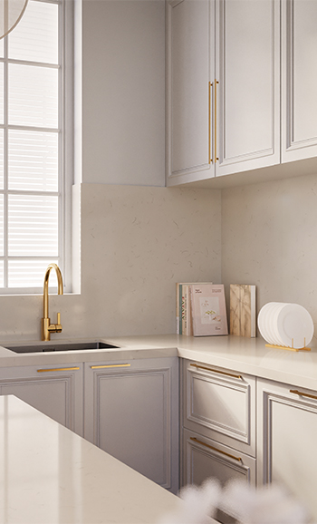 Since our products are manufactured from natural materials, each slab is unique. As a result, our images are representative and may differ from your actual surface. We encourage you to view the design at your nearest Caesarstone® or Kitchen Retail Showroom.