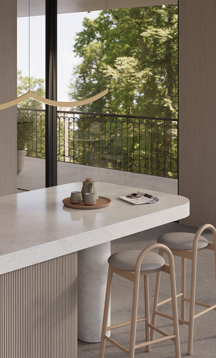 Since our products are manufactured from natural materials, each slab is unique. As a result, our images are representative and may differ from your actual surface. We encourage you to view the design at your nearest Caesarstone or Kitchen Retail Showroom.