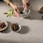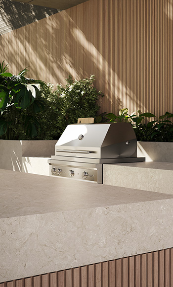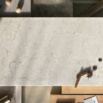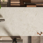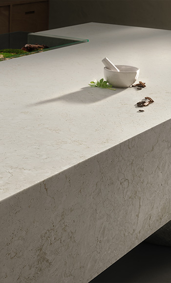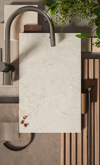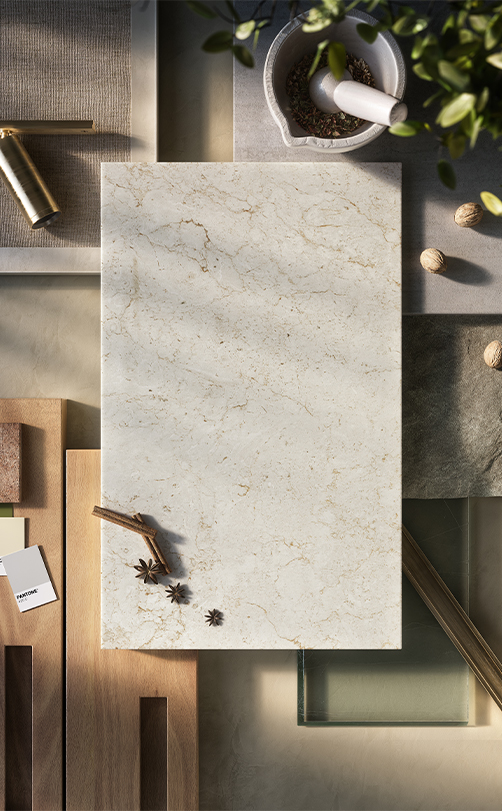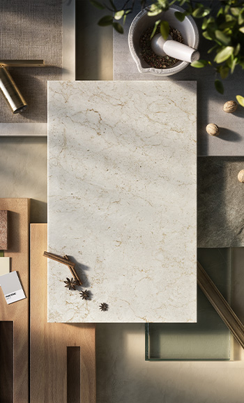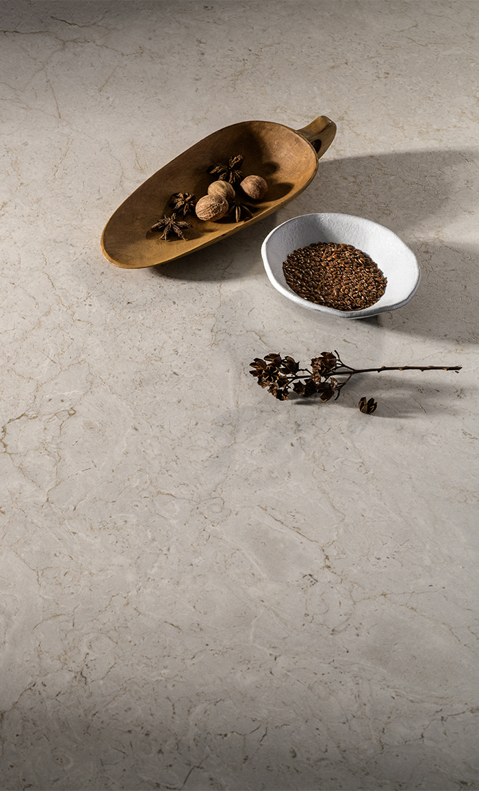 It’s ecru base and warm white, cream and lichen-toned veining reveal delicate mineral detail, creating a calm, seductive surface that complements timber, stone and textured materials.