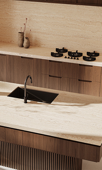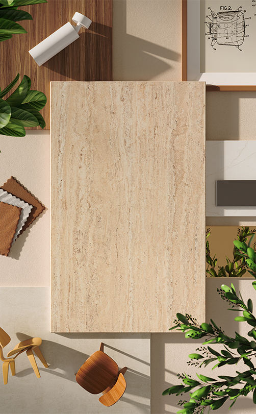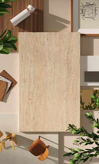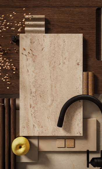 Travina distils the timeless beauty of travertine into a low‑maintenance surface rich with subtle mineral bands. Warm tones of ochre, cream, beige and taupe create a calm, natural elegance inspired by simplicity and authenticity.