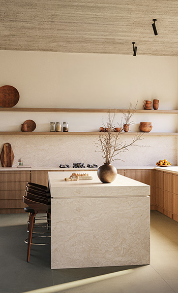 Caesarstone Mineral™ Surfaces are innovative, sustainable, low silica surfaces formulated with a unique blend of natural minerals and recycled materials for superior durability and aesthetic appeal.