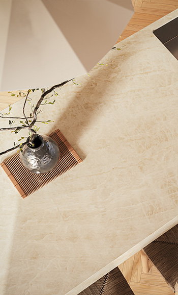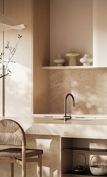 Caesarstone Mineral™ Surfaces are innovative, sustainable, low silica surfaces formulated with a unique blend of natural minerals and recycled materials for superior durability and aesthetic appeal.