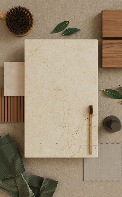 Caesarstone® ICON™ advanced mineral crystalline silica-free* surfaces are innovative, sustainable surfaces formulated with a unique blend of natural minerals and recycled materials for superior durability and aesthetic appeal.