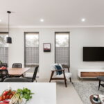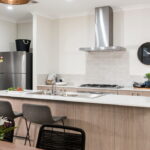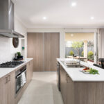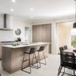 ShowroomsWith a colour palette of warm neutrals, this modern kitchen uses the warm white mineral surface to enhance the space and increase light reflection. The patina of Osprey, with its finely textured grains in mellow earthy hues, adds depth and visual interest to the space.