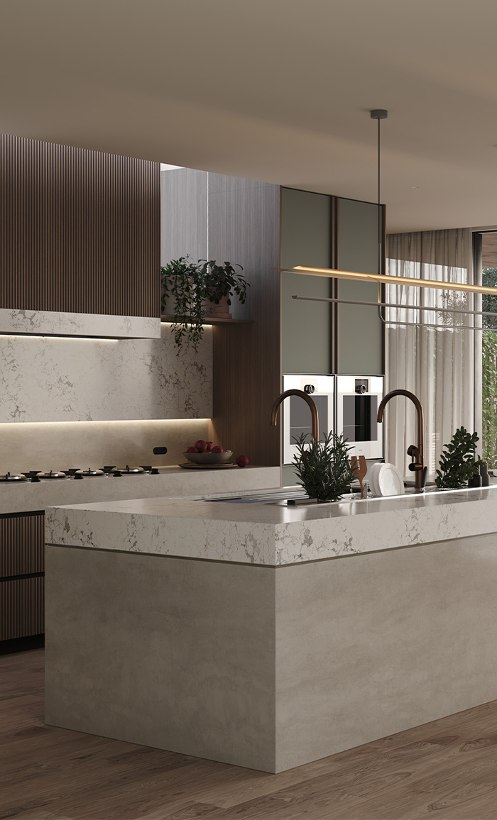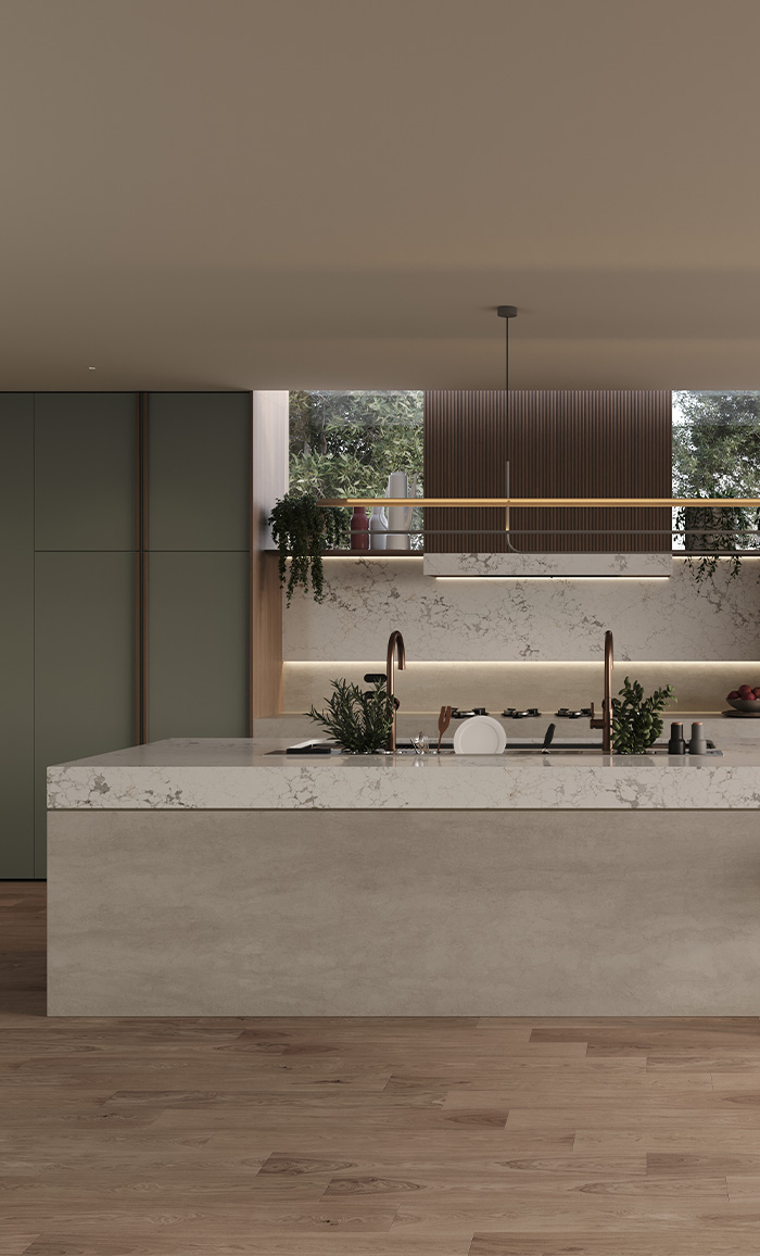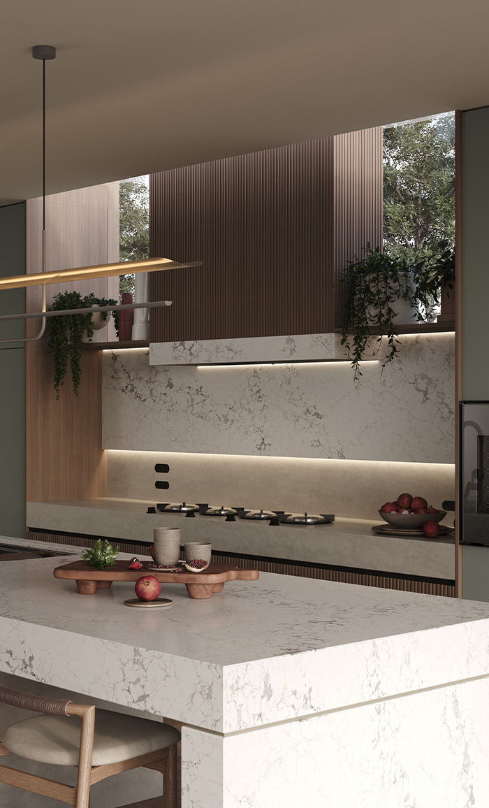 Since our products are manufactured from natural materials, each slab is unique. As a result, our images are representative and may differ from your actual surface. We encourage you to view the design at your nearest Caesarstone® or Kitchen Retail Showroom.