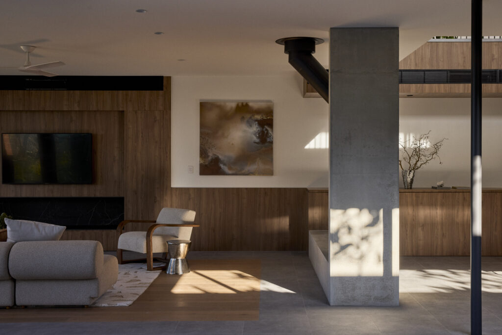 Rather than relying on colour alone, Novus uses tone, depth and material expression to define its spaces. Dark surfaces, warm timbers and raw concrete are balanced by generous ceiling heights and natural light, creating interiors that feel grounded and confident.