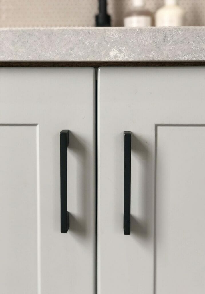 Beautiful Kaboodle shaker-style cabinet doors offer a fresh accent against the contemporary grey and black. While the modern black Smeg appliances, Franke sink and sleek mixer tap blend seamlessly delivering an exceptional finish for the new norsuHome concept store kitchen.