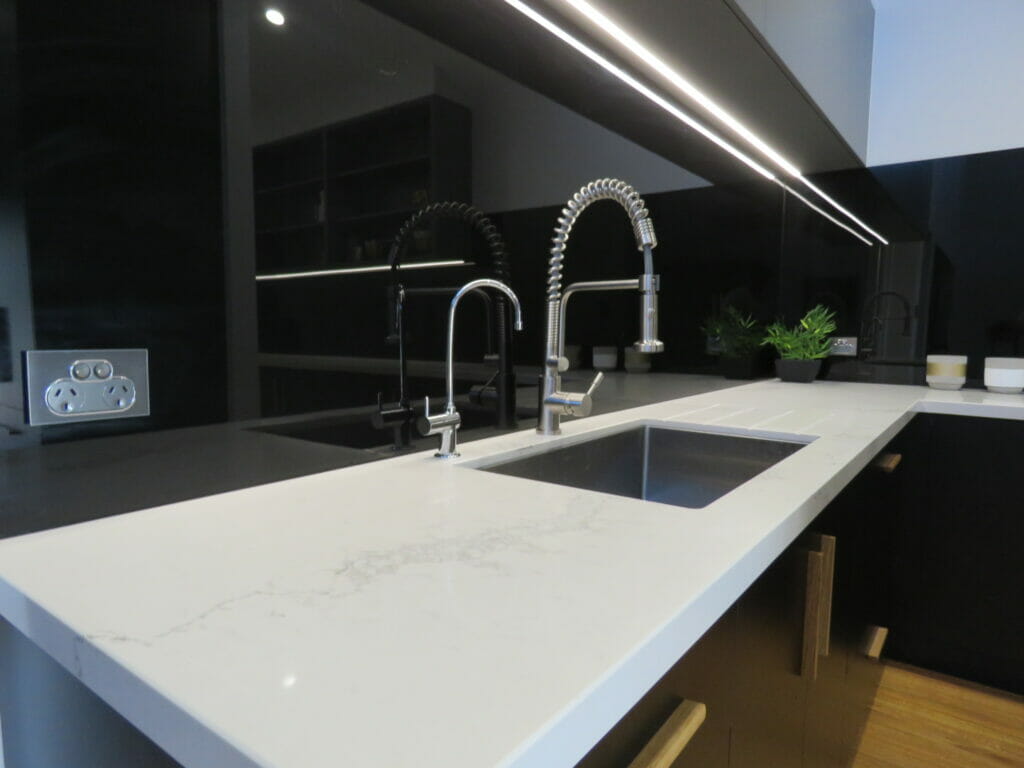 Benchtops Selected – Caesarstone Pure White™ 1141, Jet Black™ 3100 & Snow™ 2141
